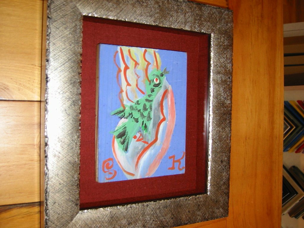 染色家・山内武志さんからの額装依頼。なんと、人間国宝、芹沢銈介氏のオリジナル。山内さんは門下生であったため、お持ちだったのだ。「ずっと、そのまま、ころがっていたから。ちゃんとしたほうがいいかなと思って。」と。気さくで気取らない人柄の山内さんの「アトリエぬいや」は浜松市板屋町にございます。
