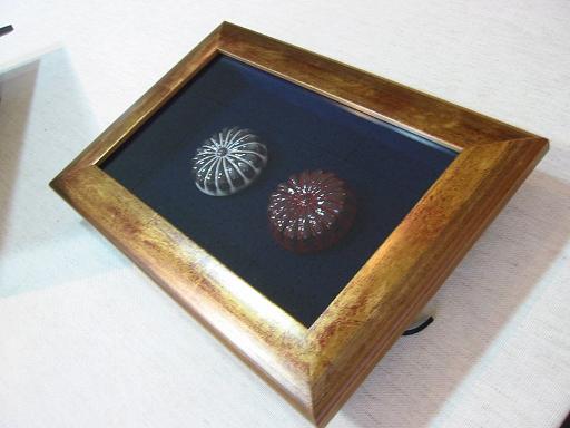 数え年で90歳(満89歳)のお祝い。花の菊の文字の入ったお名前の方ということで、つくられたオリジナルの文鎮。焼きあがり方によって色合いが一つ一つ違うのだそうです。素敵な記念品を額装させていただきました。